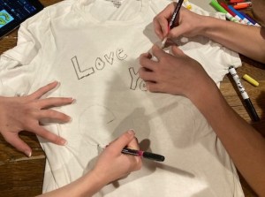 I figured, why not recreate that same gift as a nod to a wonderful memory and as a way to wrap him up in love now. I asked my kids to help, and we worked on it together, infusing well wishes from three hearts and sets of hands instead of just one. My aunt reported the shirt brought a smile and some tears—good medicine in their own right.