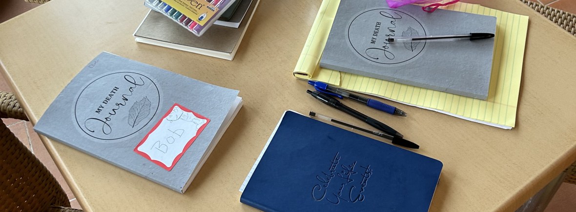 Inside its pages, a death journal can contain mementos, messages, song lyrics, poetry, quotes, “core self” lists (“Happiness Is…,” “Comfort Is…,” and others about gratitude and beliefs) as well as preferences for end-of-life care and disposition.
